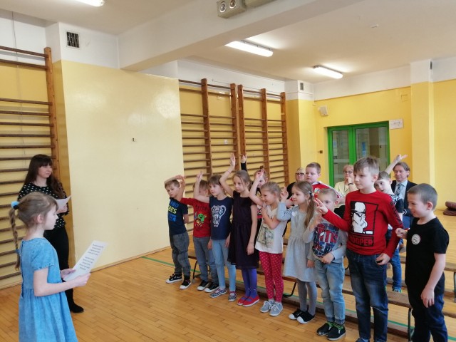 Specjalnie na tą okazję, krótki program artystyczny przygotowała klasa III b pod opieką Pani Katarzyny Biegańskiej. Po uroczystym pasowaniu na czytelnika, nowi Czytelnicy otrzymali okolicznościowe dyplomy, karty biblioteczne oraz zakładki do książki. W czasie spotkania pierwszoklasiści zostali zapoznani z Regulaminem Biblioteki, księgozbiorem bibliotecznym, rozmieszczeniem książek na półkach oraz zasadami zachowania obowiązującymi w czytelni. Dużym przeżyciem dla nowych czytelników była możliwość samodzielnego wypożyczenia książek po raz pierwszy. Wszystkim życzę sukcesów czytelniczych i zapraszam do częstego odwiedzania biblioteki i czytelni.