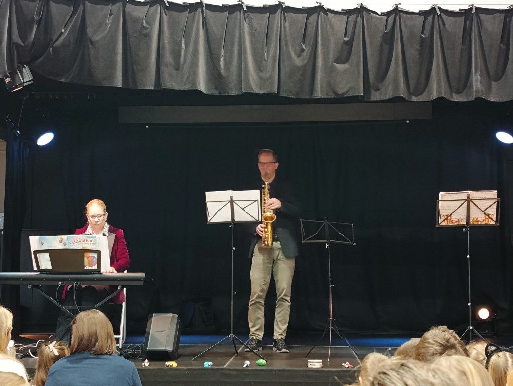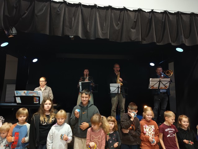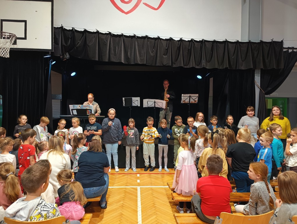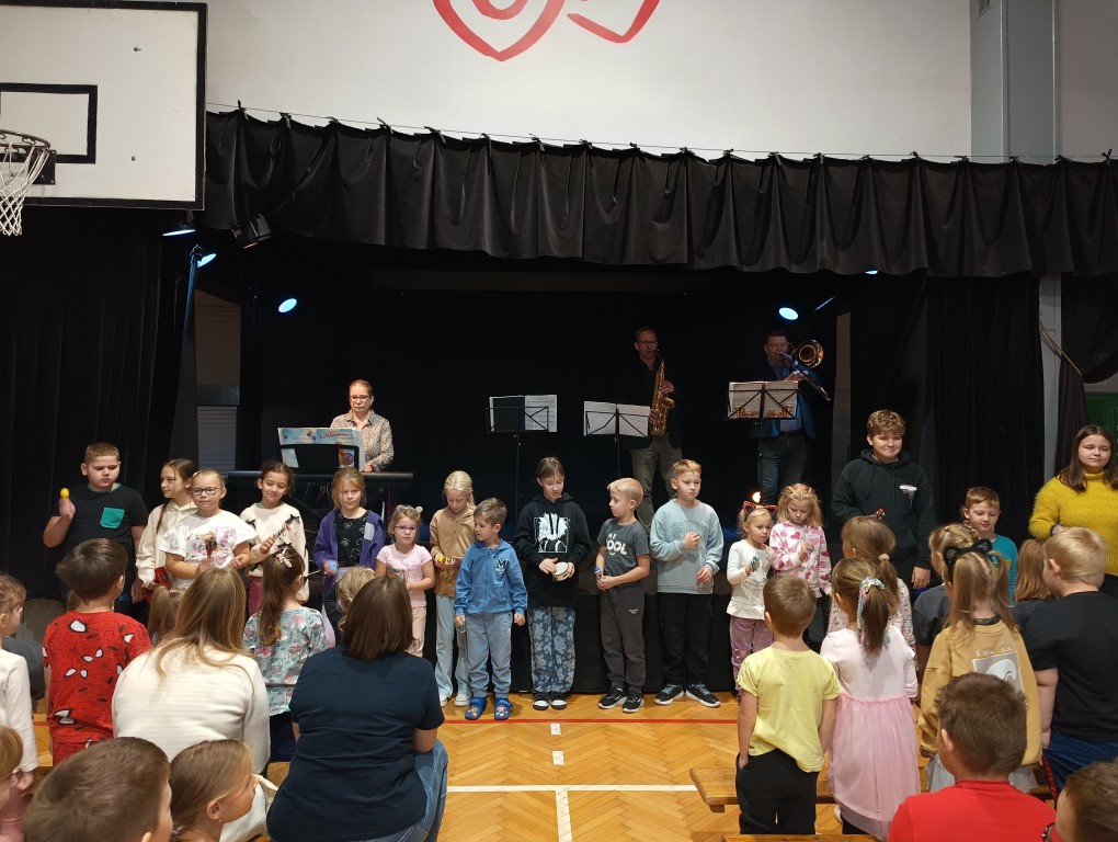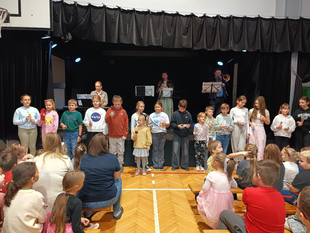 Na scenie rozbrzmiały melodie z ulubionych animacji: „Elza i Anna”, „Vaiana”, „Lilo i Stich”, „Pocahontas” i oczywiście nie mogło zabraknąć hitu „Mam tę moc”! Niektórzy uczniowie aż podskoczyli z radości - a potem chwycili za instrumenty perkusyjne i dołączyli do muzycznej zabawy jak prawdziwi członkowie orkiestry.