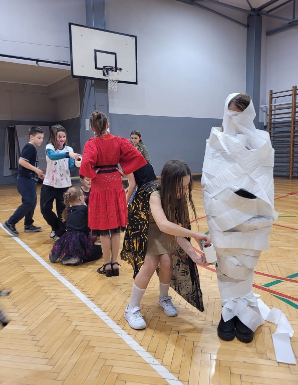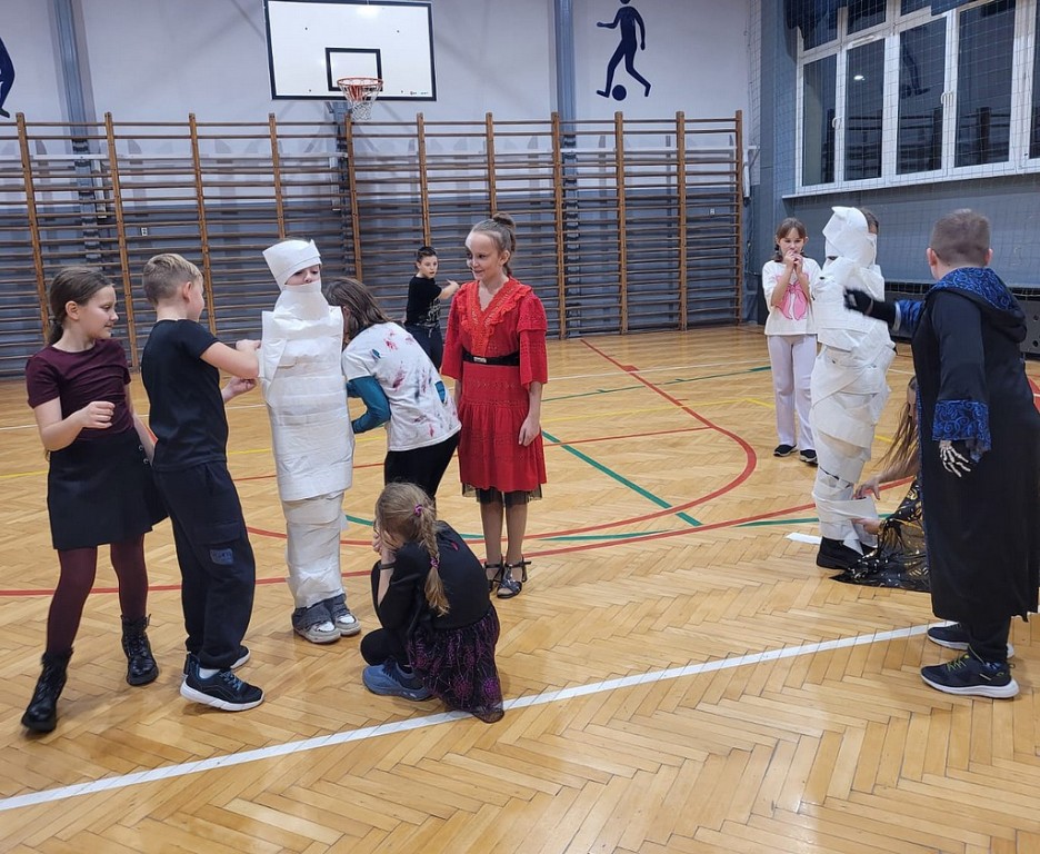 Podczas zabawy uczniowie mieli okazję poznać elementy kultury angielskiej związane z obchodami Halloween oraz wziąć udział w typowych dla tego święta grach i zabawach. Nie zabrakło tańców, śmiechu i dobrej muzyki.