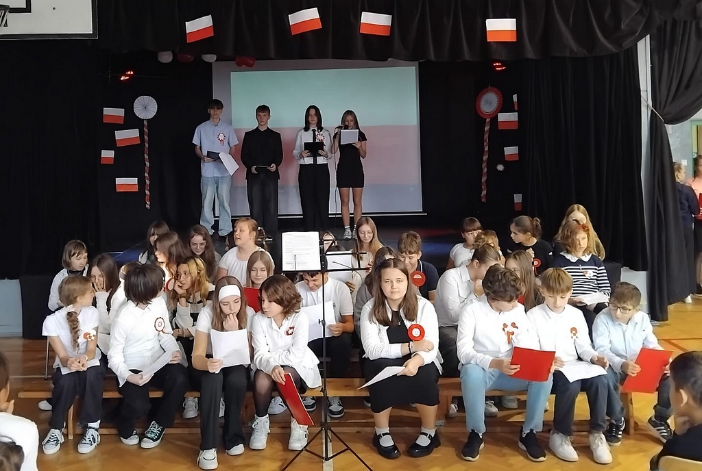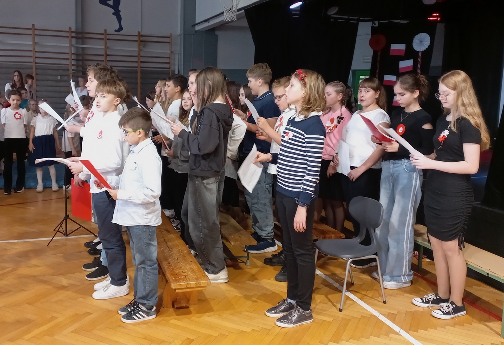 W ramach tegorocznych obchodów Narodowego Święta Niepodległości uczniowie naszej szkoły wzięli - w dniu 13.11. - udział w uroczystej akademii upamiętniającej te przełomowe dla odradzającej się Ojczyzny wydarzenia. Było podniośle, odświętnie i wyjątkowo. Uczniowie w galowych strojach z widocznymi kotylionami oczywiście w biało-czerwonych... niezwyciężonych barwach pięknie spiewający patriotyczne pieśni! To prawdziwie żywa lekcja historii!