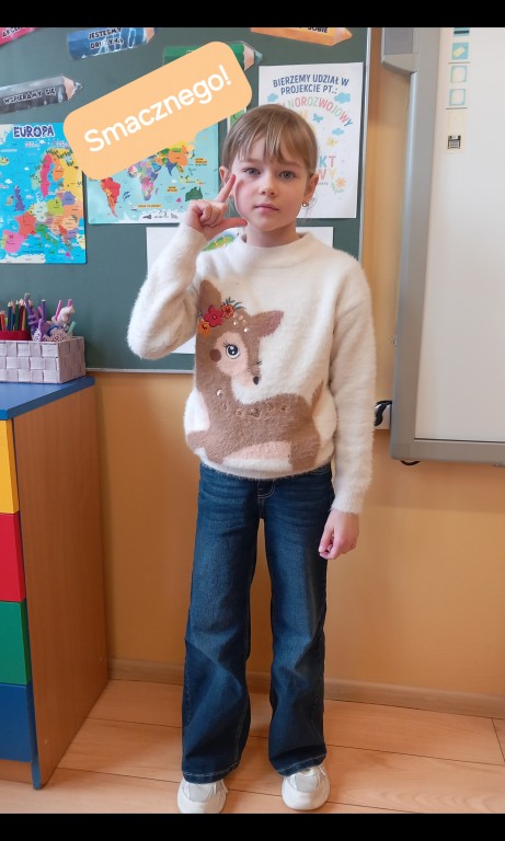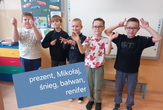 Dzieci poznały znaki PJM związane z zimą i świętami, a także wybrane kolory. Podczas śpiewania piosenek „Dzyń, dzyń, dzyń” i „Smacznego” nauczyły się migać kolejne znaki, m.in. zapraszać, śpiewać, malować, itd., a mikołajkowa zabawa ruchowa dostarczyła im wiele radości i uśmiechu.