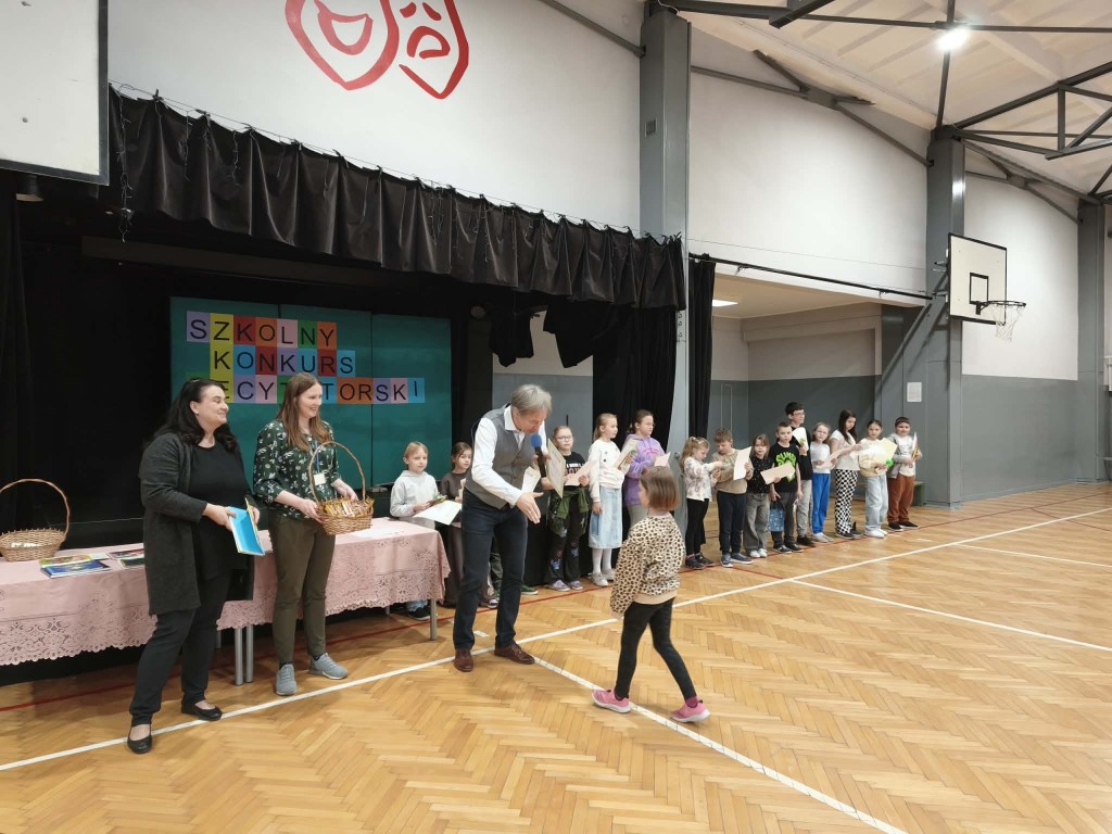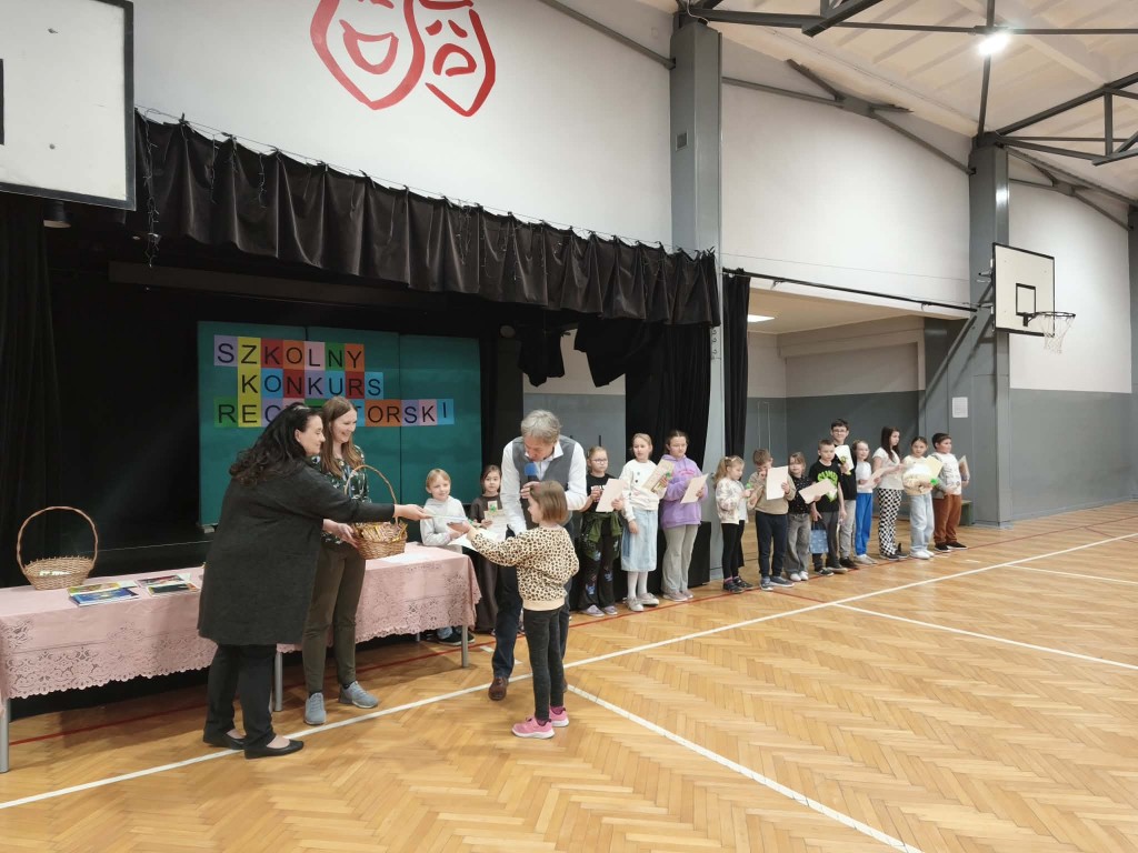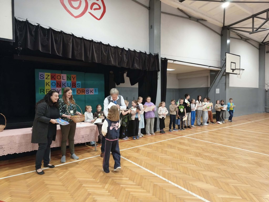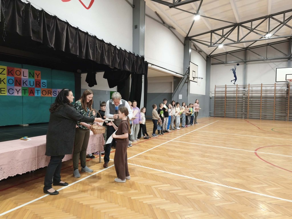 Uroczyste wręczenie nagród odbyło się podczas apelu w sali gimnastycznej. Dyrektor szkoły pogratulował wszystkim uczestnikom oraz wręczył nagrody laureatom.