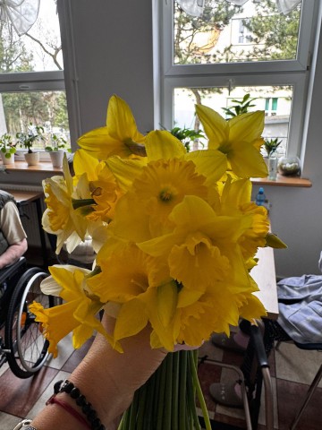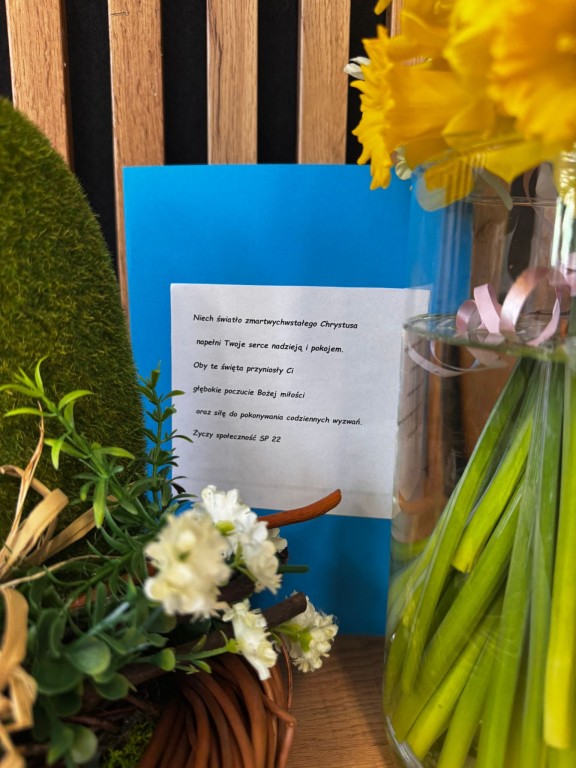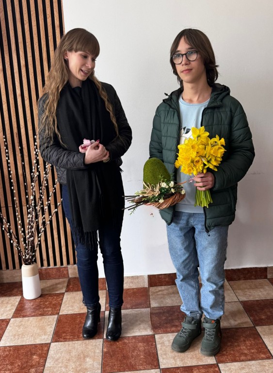 Uczniowie złożyli mieszkańcom serdeczne życzenia, a także wręczyli drobne upominki. Wśród nich znalazły się świeżo zerwane żonkile, zasadzone przez uczestników kółka przyrodniczego, własnoręcznie przygotowane kartki świąteczne oraz piękny stroik wielkanocny.