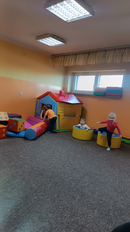 W ramach innowacji "W zdrowym ciele zdrowy duch" ćwiczymy ciało i synchronizację do dźwięków muzyki.